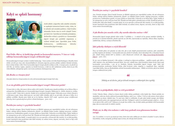 Články o Hormonálnej jogovej terapii, ktoré sa objavili v spolupráci s našou inštruktorkou Frídou Gedeonovou